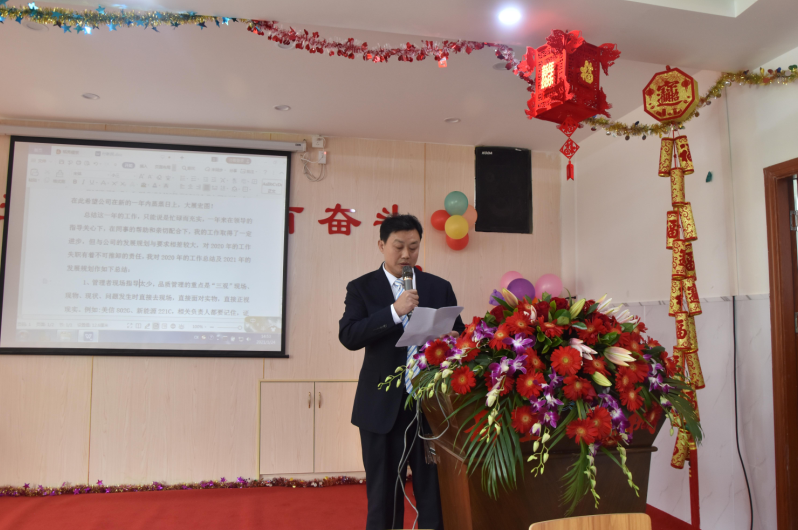 東莞市新(xin)望(wang)包裝機械有限公司(si)2020年年度總結大會于2021年1月24日下午14:30在公司食堂隆重舉行。年終會議由行政部經理張麗君主持。公司黨支部書記潘婉荷對黨支部成立5年以來的黨員活動和黨建工作做了匯報和總結。公司運營管理中心和技術創新服務中心兩套班子成員緊靠大會主題“征途漫漫,惟有奮斗”進行總結與探討,盤點過往成績與不足,為公司2021年戰略規劃獻計獻策,常委班子成員都發表了熱情洋溢的講話。公司總經理羅永輝做了《前程無坦途(tu) 唯有(you)奮起爭》的年度工作報告。