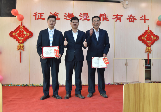 副總經理羅永新為李開、羅執輝、唐明階頒發技改鼓勵獎