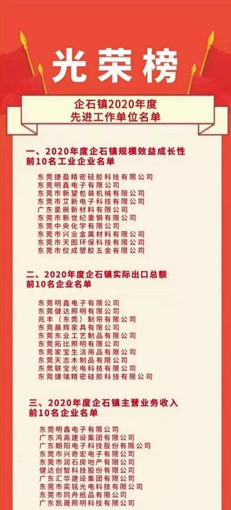 3月3日上午,企石鎮召開2020年度工作總結大會,發布了《企石鎮2020年度先進工作單位名單》,包括《2020 年度企石鎮規模效益成長性前10名工業企業名單》《2020 年度企石鎮實際出口總額前10名企業名單》《2020 年度企石鎮主營業務收入前10名企業名單》等10份名單。會議對2020年度企石鎮主營業務收入前10名企業進行了現場表彰。新望公司(si)有(you)幸入列:企石鎮2020年度規(gui)模(mo)效益成(cheng)長性(xing)前10名。