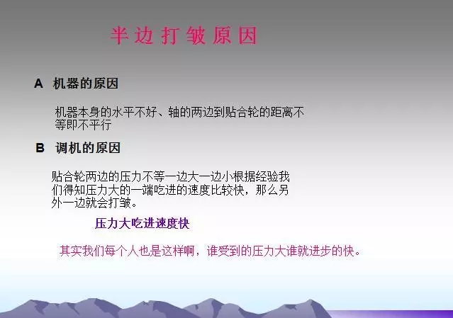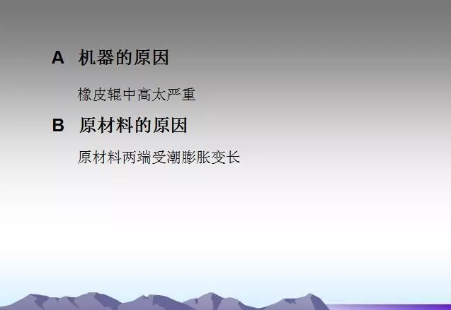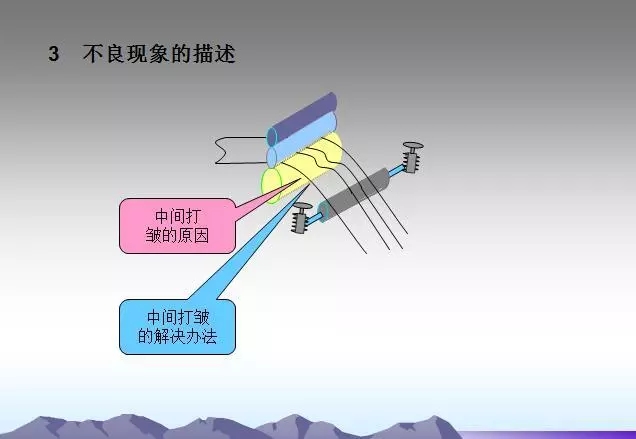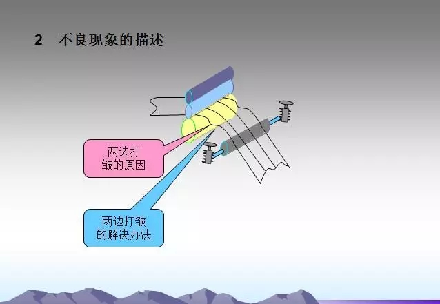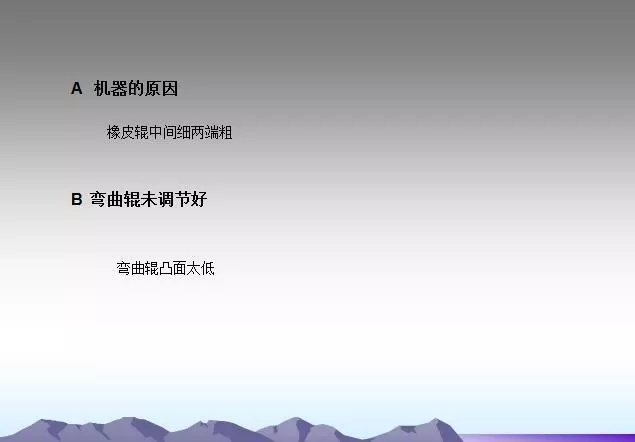 背輥及各過輥粘有異物或使(shi)用過多的水。需要經常檢查,及時(shi)發現(xian)并清理,并注意不要損傷(shang)輥面(mian)。