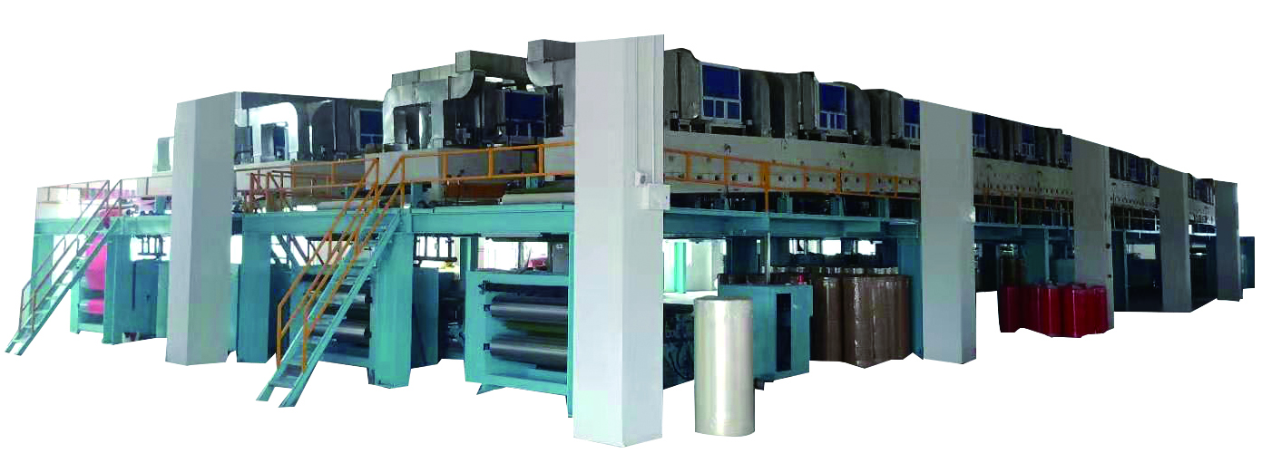 將(jiang)成(cheng)卷(juan)的(de)基材(cai),如:紙張、布匹、皮革、鋁箔(bo)、塑(su)料(liao)薄(bo)膜等(deng),涂(tu)上(shang)一(yi)層特定功能的(de)膠、涂(tu)料(liao)或(huo)油(you)墨等(deng),并烘干(gan)后收卷(juan)。